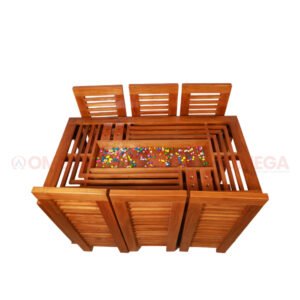 Wooden Dining set with 5 x 3 Glass top Dining Table and 6 Full Back Dining Chairs, made by Acacia Wood